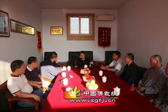 唐山佛协秘书长祖廓向李泓秘书长汇报唐山佛协所做工作