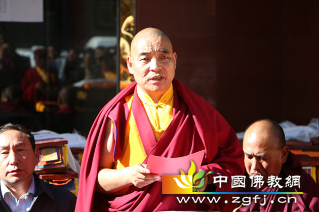 日喀则佛教协会会长班典顿玉代表接受捐赠寺庙致答谢词