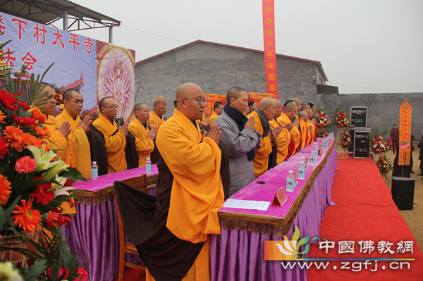 河北省佛教协会副会长、石家庄市佛教协会会长果通大和尚致辞,太平寺始建于1403年已有六百多年的历史,在这块美丽的土地上,书写了灿烂的佛教文明,希望众人共结善缘,为大殿建设尽一份力。