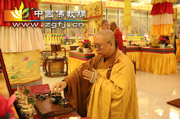 中国佛教新闻网河北讯:2017年3月13日(农历二月十六),河北迁西普陀禅寺2017水陆法会内坛今日举行结界洒净、发符、悬幡仪式。