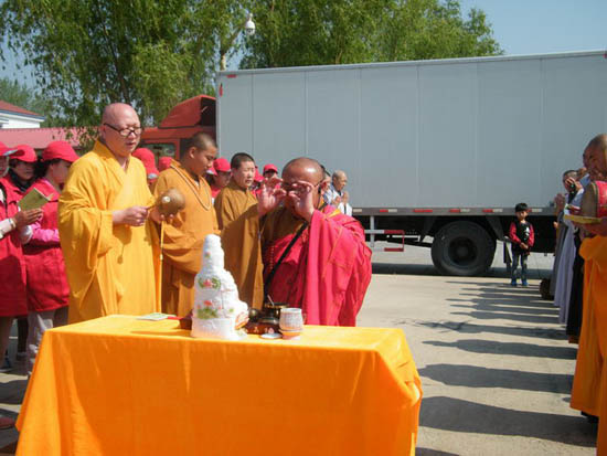 椒园寺住持慧开法师在放生仪式上主法