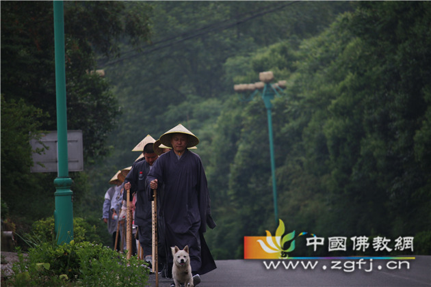 中国佛教新闻网安徽讯:为了践行佛陀的教育,体悟正信的佛法,引领僧人及信众发无上菩提心,行持菩萨道,盱眙铁山禅寺联合靖江西来古寺组织僧俗二众于2017年5月10日起香行脚朝拜九华山。5月21日,行脚团顺利抵达九华山大愿文化园。5月22日天刚亮,行脚团整装出发,一路步行上山朝拜“护国月身宝殿”,愿以此殊胜功德祈祷国家繁荣昌盛,人民幸福安泰。