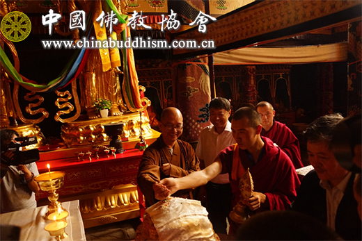 学诚会长与洞阔尔活佛一道佛前供曼扎