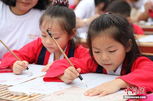 据统计,当天,共有946组小朋友在家长的陪伴下,体验了古代“开笔礼”的规范仪程。