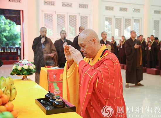 恭请三皈本师道慈法师(图片来源:凤凰网佛教 摄影:普陀山佛教协会)