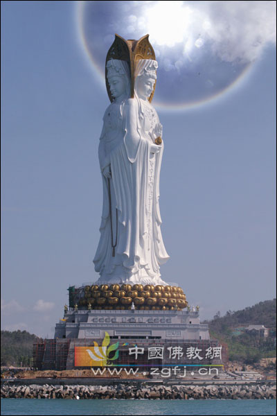 1993年,中国国务院宗教事务局、海南省人民政府正式批准兴建南山寺,并批准在南山寺前海中敬塑108米高的观音圣像。1999年,农历九月十九日,南山隆重举行了“南山海上观音”敬造工程开工典礼。工程历时六载,于2005年4月15日建成,2005年4月24日(农历三月十六日,准提菩萨诞辰日)举行盛大开光仪式。