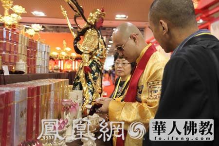 精美庄严的佛事用品展位吸引香港法师驻足观看
