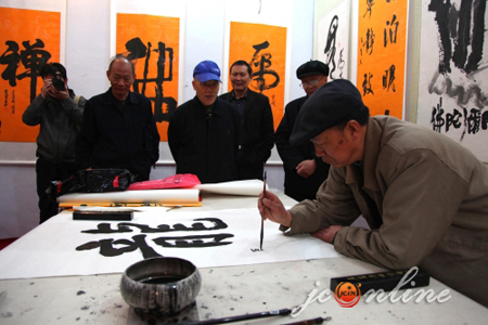 现场表演书法 合影留念 2010年4月10日上午,山西省晋城市白马禅寺书画院揭牌暨佛教艺术摄影开机仪式举行。市委常委、市统战部部长李治国,中国书法艺术协会执行主席吴大威,原市委书记李拴纣出席仪式并为书画院揭牌。 据悉,白马禅寺书画院主要是依托佛教文化,借助书画、摄影、文学等不同形式,定期地进行佛教艺术活动和收藏优秀的佛教艺术作品,进一步传播佛教文化,展现佛教儒雅的风采。