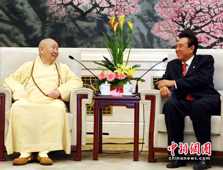 2010年4月23日上午,海峡两岸关系协会会长陈云林在北京会见并宴请了台湾中台禅寺开山方丈惟觉长老一行。