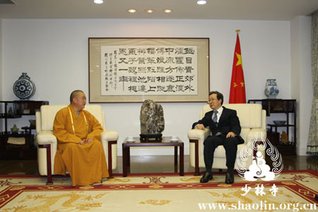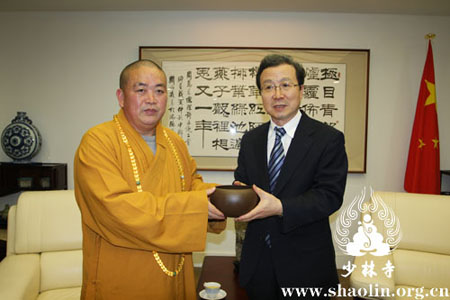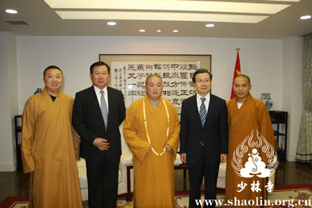 2010年4月27日下午,中国驻日大使程永华、公使曲来璞在中国驻日大使馆,会见河南嵩山少林寺方丈永信法师一行。