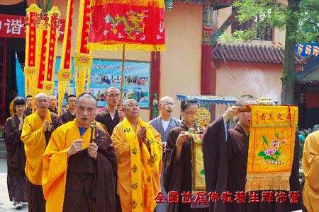 2010年5月2日,四川省资中宁国寺方丈清德长老莅临隆昌县古宇寺,为全国首届佛教养生禅修营学员讲授《遗教三经》。