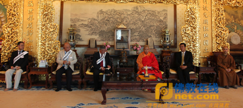 中国佛教协会副秘书长 、灵光寺方丈常藏法师在灵光寺山门前热情接待了参拜团一行,双方并在会客厅进行了友好交流。