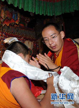 为第七世热振赐福(图片来源:新华社记者 觉果 摄)