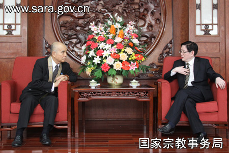 6月22日下午,王作安局长在我局会见了著名的日本佛教友人、日本佛教大学理事长水谷幸正长老。