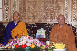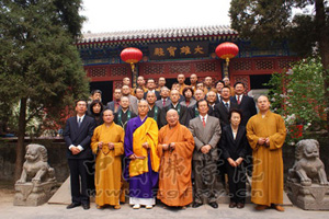 在大雄宝殿诵经祈祷世界和平、人民幸福后,双方在法源寺大客厅举行了中日佛教友好、中日阿含宗佛学等话题进行了座谈。叙旧之余传印长老对日本佛教界阿含宗对中国佛教事业发展的关心、支持表示感谢。并用自己的亲毛题字“华藏庄严”墨宝赠送日本客人,并以此来形容日本现在阿含宗的本山及其分道场。最后日本客人在该院代表的陪同下参观法源寺、观赏满院夺丽的丁香雪海。