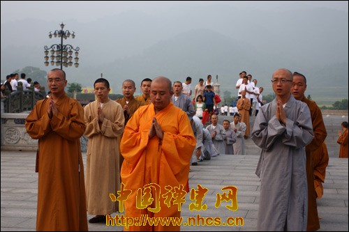 今日“禅悦行”活动进入第五天,恰逢农历六月十九观音成道日,“禅悦行”也进入了最有意义最具实践性的活动——礼拜六祖。上午七点多,南华禅寺曹溪佛学院教务长传源法师、当家师法祇法师、各小组辅导员师父和营员以及部分居士三百多人三步一拜,口诵“南无阿弥陀佛”圣号,从三无桥开始,经过广场、山门、天王殿、大雄宝殿、藏经楼,最后到祖殿礼拜六祖。传源法师在祖殿进行了开示,他非常肯定营员们在礼拜六祖中的虔诚和坚持,鼓励营员们在“禅悦行”活动中多学些方法,在未来的生活中能够真正使自己受益。