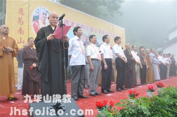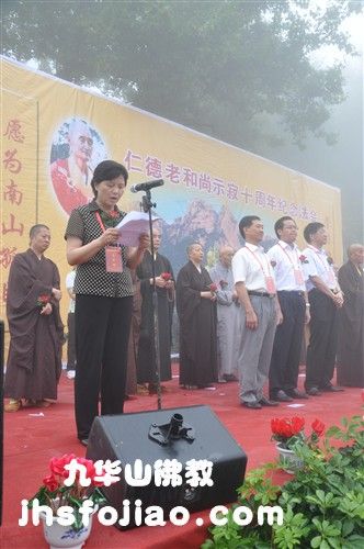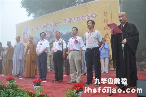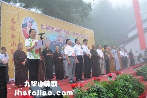 8月4日,九华山佛教协会在祗园寺塔院隆重举行仁德老和尚示寂十周年纪念法会。安徽省宗教局副局长张瑾,省委统战部助理调研员孙瑞祥,池州市政协副主席、市委统战部部长李跃宜,市委统战部副部长、市宗教局局长王安民,市委统战部副部长、市宗教局副局长高根彪,九华山风景区党工委委员、纪工委书记柯烈荣,风景区党工委委员、管委会副主任吴少华,风景区宗教局副局长张新民,风景区工委统战部副部长、宗教局副局长朱莉莉,池州学院党委书记王欣,原池州市人在常委会副主任方正全,池州市文联主席吴昭元,中国佛教协会副会长、江西省佛教协会会长纯一大和尚,峨眉山佛教协会副会长满林法师,江苏省丹阳龙庆寺住持礼相法师,安徽省佛教协会副会长、六安市佛教协会会长、云峰寺方丈慧开大和尚,省佛教协会副会长、巢湖市佛教协会会长、鼓山寺方丈智文大和尚,省佛教协会副会长、安庆市佛教协会会长、三祖寺住持宽容法师,省佛教协会副会长、贵池观音寺住持传德法师,省佛教协会副会长、开福寺圆藏法师,省佛教协会副秘书长陈慧峰居士,合肥市佛教协会秘书长界山法师,巢湖含山褒禅寺方丈绍云大和尚等出席,九华山佛教协会会长慧深法师,副会长慧庆法师、慧光法师、无垢法师、圣富法师、道源法师、果卓法师,副秘书长开豪法师,后山分会会长意彻法师,仁德老和尚弟子、老和尚皈依弟子、老和尚亲属,专家学者以及全山寺院住持和当地群众近千人参加了纪念法会。
