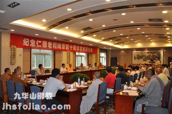 下午二时三十分,九华山佛教协会在东崖宾馆举行“纪念仁德老和尚示寂十周年学术研讨会”。参加上午纪念法会的领导,诸山长老,九华山佛教协会正、副会长和常务理事,仁德老和尚生前好友、皈依弟子、亲属代表以及专家学者60余人参加了研讨会。