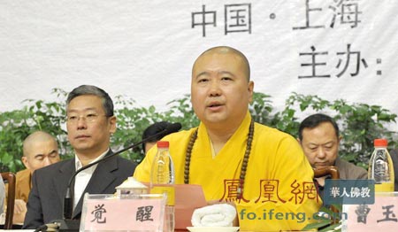 上海玉佛禅寺方丈觉醒大和尚在文化周上发言。(图片来源:凤凰网华人佛教 摄影:倪伟俊)